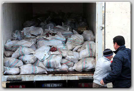 Gümrük Müdürlüğü'nde işlemleri yapılan etler Van Belediyesi Zabıta Müdürlüğü'ne teslim edildi. Bu sabah etleri teslim alan Zabıta Müdürlüğü ekipleri, Van-Erciş karayolu üzerinde bulanan bir alana götürdü.