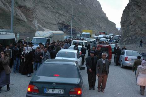 Bunun üzerine binlerce kişi Hakkari-Van karayolunda oturma eylemi yaparak karayolunu 6 saat boyunca ulaşıma kapattılar. Havanın kararmasına rağmen bölgede ayrılmadılar. Kalabalıktan bazıları ise kayalıkların dibinde ateş yakarak ısınmaya çalıştılar. Hakkari eski Belediye Başkanı Fadıl Bedirhanoğlu, Hakkari Bağımsız adayı Adil Kurt. Ve BDP eski Genel Saymanı Salih Yıldız birer konuşma yaparak, artık halkın sabrı taşıdığını belirterek, hükümete yüklendiler. Halkı tutmaktan zorlandıklarını belirten başkanlar böyle gitmesi halinde durumun daha da bir çıkmaza gireceğini söylediler.