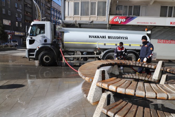Cadde ve sokakların boş olduğu kentte itfaiye ekipleri 3 araç ve 7 personel ile çalışmalarını sürdürdü. Atatürk anıtı başta olmak üzere esnafların kepenkleri de tazyikli suyla yıkandı. İşyerleri açık olan bazı esnaflar ise belediye ekiplerine kahve ikram ederek, çalışmalardan dolayı Hakkari Valiliği ve Belediye ekiplerine teşekkür ettiler. Haber: Feyzullah Taş