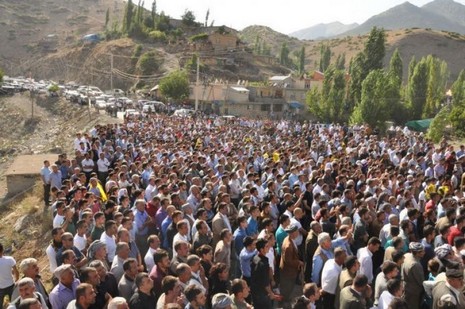 'Ardından konuşan Demirtaş, bayramın bütün Kürt halkı başta olmak üzere, bu coğrafyada yaşayan ezilen halklara barış ve demokrasi getirmesini diledi. Dün 301 insanın devlet eli ile katledildiği Soma'da bugün ise 34 gencin katledildiği Roboski de olduğunu belirten Demirtaş, Somada’ki acılı annelerin ve ailelerin bayram selamlarını Roboskili ailelere getirdiğini söyledi.