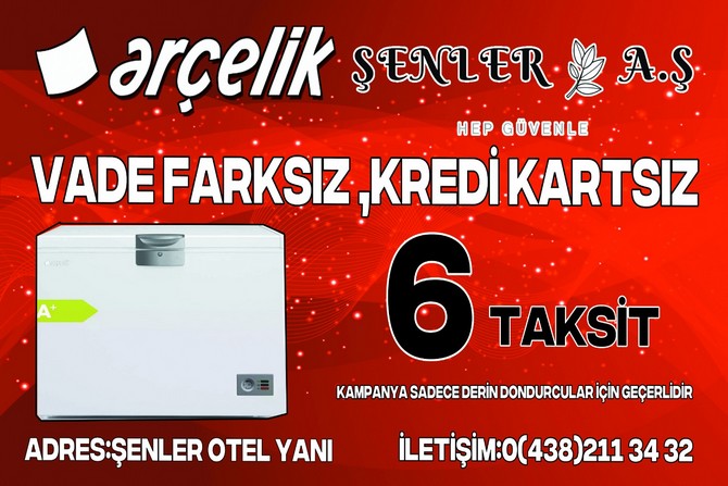 Şen Otel yanında hizmet veren Arçelik Şenlerde vade farksız, kredi kartsız. 6 taksit imkanı ile derin dondurucu alabilirsiniz.