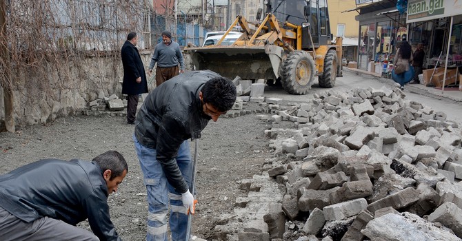 Kış aylarında yağışlardan dolayı tahrip olan yollardaki parke taşlarının onarılması için başlatılan çalışmalara katılan Hakkari Belediyesi Fen İşleri Müdürlüğü ekipleri, Altay Caddesi üzerindeki yolda tahrip olan parke taşlarını iş makineleri ile kaldırıp topladıktan sonra buradaki yolda yapılan düzenlemeler ile yeni parke taşlarını döşedi.