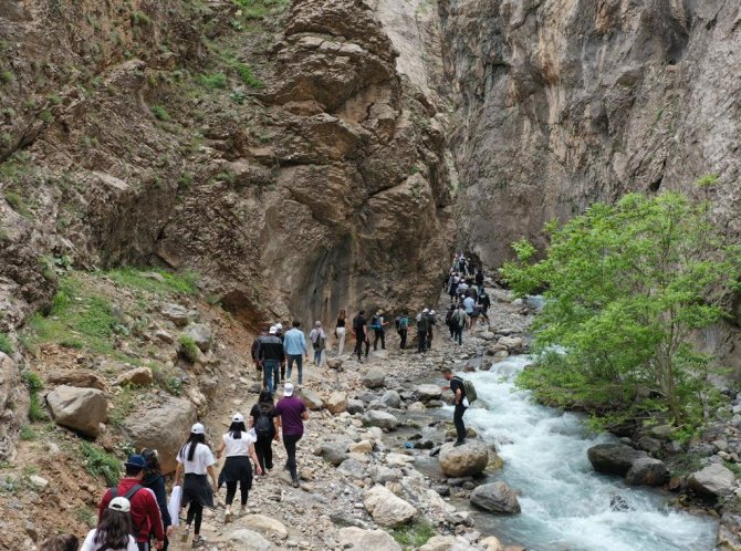 Hakkari merkeze 10 kilometre uzaklıkta olan, Helel vadisine doğa yürüyüşüne her kesimden yaklaşık 500 kişi katılım sağladı.