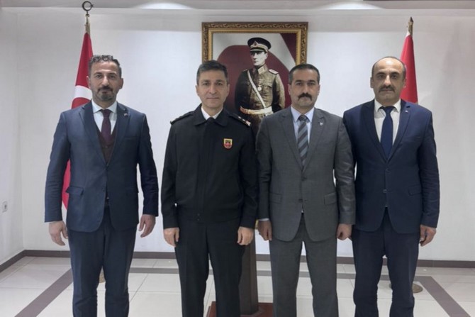 Hakkari MHP İl Başkanı Fatih Öztepe, MHP Hakkari Belediye Başkan aday adayı Hüseyin Korkmaz, Adana İl Jandarma Alay Komutanı Tümgeneral Coşkun Sel'i makamında ziyaret ettiler.
