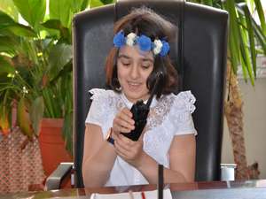 Müdür Özdemir öğrencileri kapıda karşılarken, VEDAŞ İl Müdürlüğü koltuğuna temsili olarak oturan Şehit Selahattin İlkokul 4. Sınıf Öğrencilerinden Fatma Almofti telsizin başına geçerek Hakkari kent genelinde enerjinin durumu hakkında bilgi aldı.