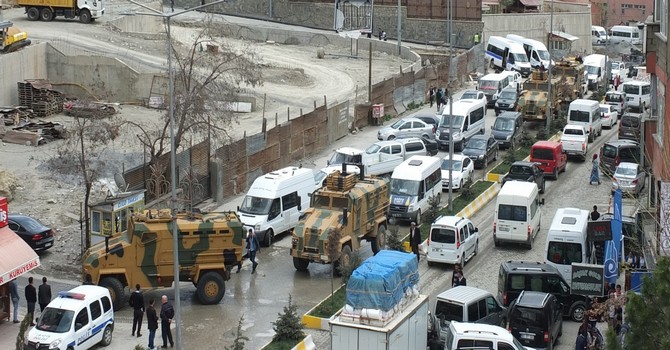 Bir süre önce 100 yakın mayına dayanıklı “kirpi” adı verilen askeri araç konvoyu Çukurca ilçesindeki sınır boylarına hareket etmişti. Bugün ise 150 araçlık askeri konvoy Hakkari çarşı merkezinden geçerek Hakkari Dağ ve Komando Tugay Komutanlığına hareket etti. Burada bir süre bekletilen konvoyun daha sonrada sınır birliklerine destek amaçlı gönderilecekleri belirtildi.