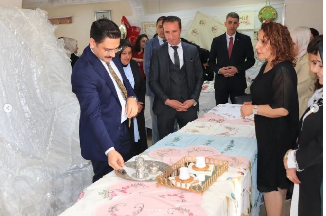 Hakkari Vali Yardımcısı Tayyar Emre Mahmutoğlu, Hakkari Valiliği Sosyal Yardımlaşma ve Dayanışma Vakfı (SYDV) tarafından Halk Eğitim Merkezi bünyesinde açılan (ADEM-1) şubesindeki Modül sonu sergisini ziyaret etti.