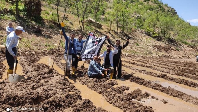 Kuzey Irak’ın sıfır noktasındaki Hakkari’nin Çukurca ilçesinde pirinç tarlasında çalışan gençler Beşiktaş bayrağını açarak kutlama yaptılar.