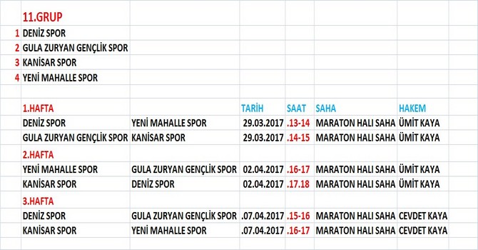 Ayrıca müsabakaların halı sahaları değiştirilmiş olup takımların saha, tarih ve saatleri tertip komitesi tarafından belirlendiği an tüm takımlara bildirilecektir.