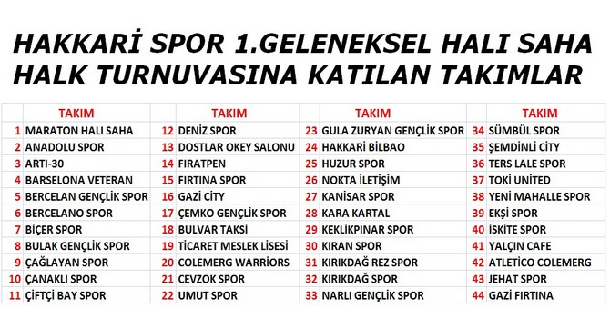 Hakkâri Spor 1.Geleneksel halı saha halk turnuvası statüsüdür.