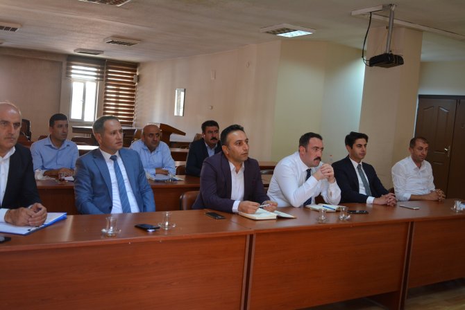 Hakkari Vali yardımcılığına yeni atanan Mustafa Berat Kasımoğlu, belediye meclis toplantı salonunda birim müdürleriyle durum değerlendirme toplantısı gerçekleştirdi.