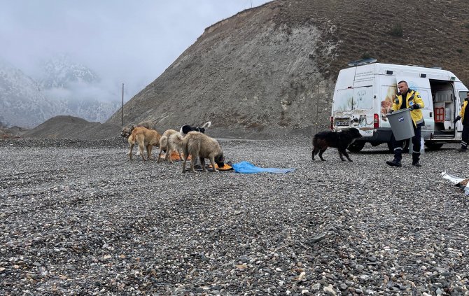 Hakkari Belediyesi Veteriner İşleri Müdürlüğü ekipleri zorlu hava şartlarında can dostları unutmadı.